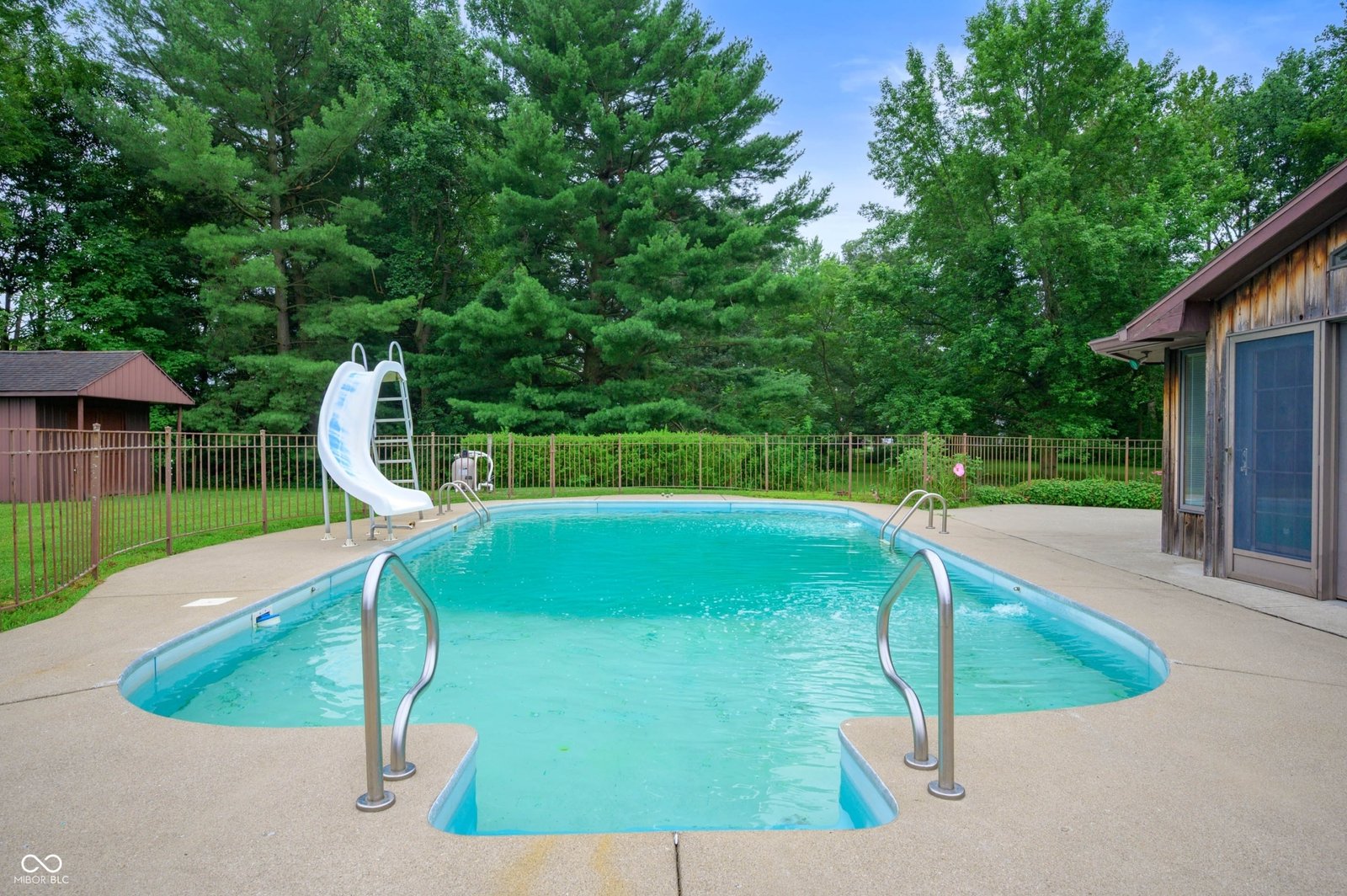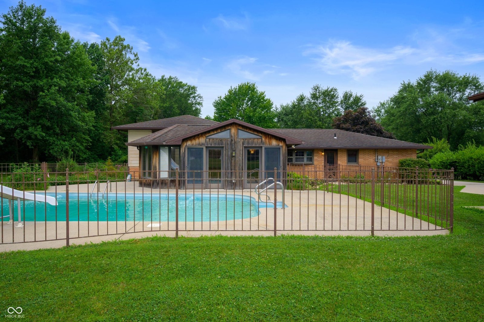 | “Built in 1968, this 4 bedroom, 2 bathroom home has been lovingly cared for by its original owner. Nestled on a quiet cul-de-sac on over a half-acre lot, this home offers great space and functionality. The main level has new laminate flooring in the living room and dining room. The great room and sunroom overlook the beautiful inground pool. The upper level features three bedrooms with hardwood floors and a full bath, while the lower level includes a fourth bedroom. You will love the newer sunroom perfect for watching beautiful sunrises. The main level includes newer laminate flooring in select areas and a spacious layout. Outside, a standout feature is the large outbuilding ( 46 x 27) with 2 over sized garage doors 12 feet high perfect for an RV, plus two finished and heated rooms-ideal for a home office, hobby area, or pool house. A two-car attached garage adds convenience. You will love this peaceful location and the easy access to I-69 and Xfinity available.” |