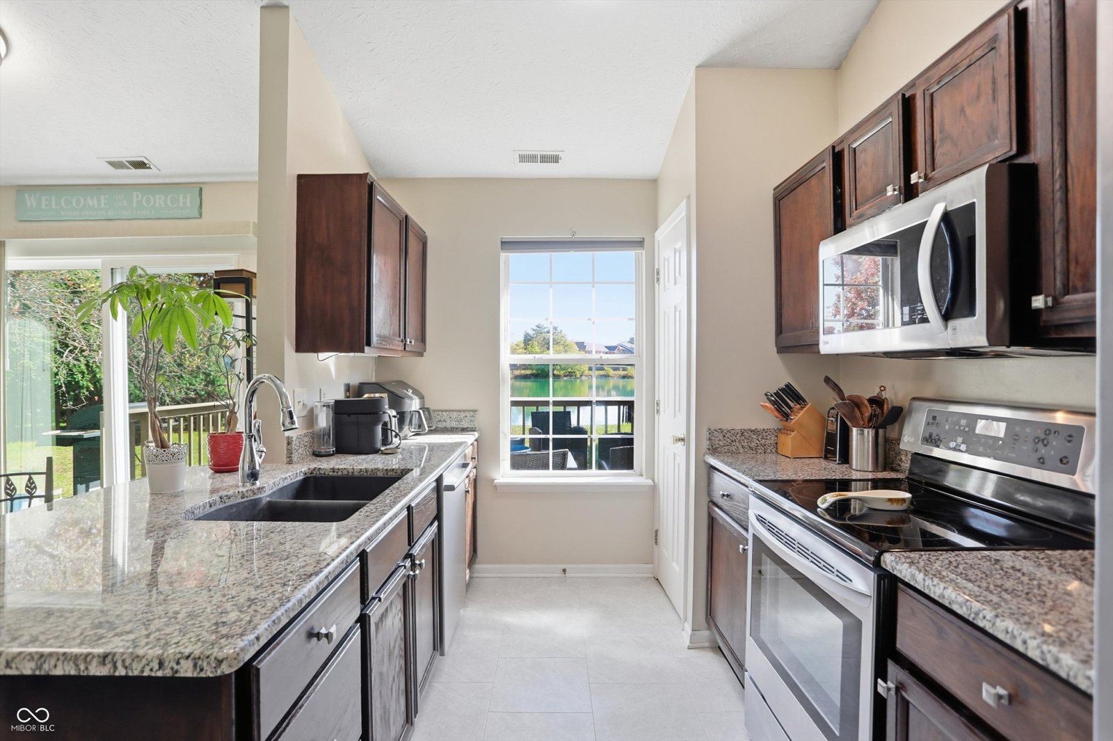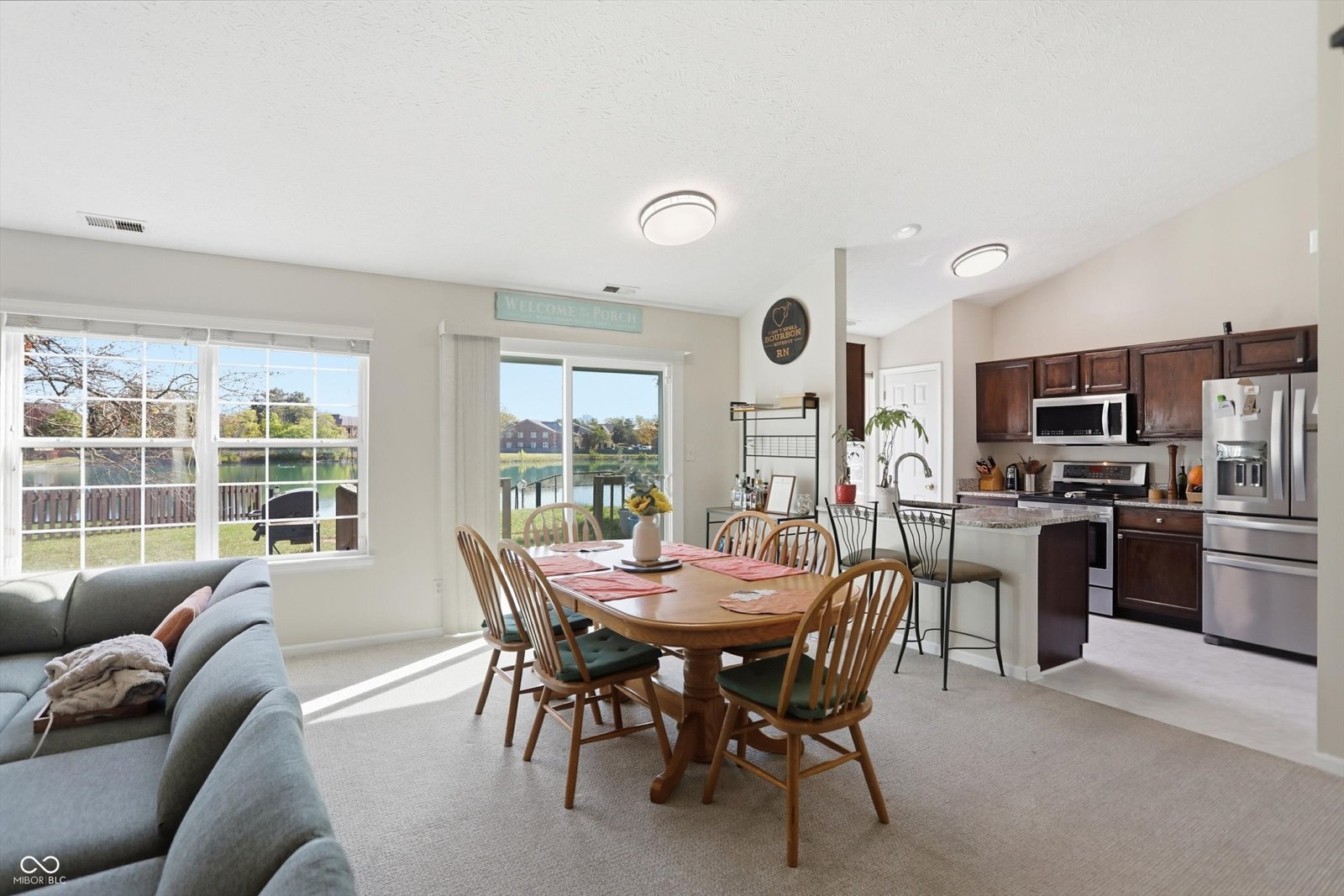Discover this stunning pond view ranch featuring three spacious bedrooms, two full bathrooms, and a two-car garage, nestled in a charming and serene Waterside neighborhood in Noblesville. This home boasts a brand new roof, gutters, siding, fascia boards, and trim! It’s a true gem, showcasing a modern kitchen equipped with granite countertops and matching stainless steel appliances including a new Bosch Dishwasher! Whether you’re enjoying a home-cooked meal or indulging in takeout, the elegant formal dining room and inviting kitchen bar top provide perfect settings for any culinary experience. Imagine cozying up with loved ones for a movie night in the great room, which features a vaulted ceiling and plant shelves, all while basking in the warmth of the gas fireplace. Convenience is key with the laundry room with a new washer and dryer, located just off the kitchen, only steps away from the bedrooms. The owner’s suite includes an ensuite bathroom, while Bedroom 3, which features double glass French doors, can easily serve as an office. Step outside onto your recently stained large wooden deck and revel in the beauty of nature. The backyard offers endless possibilities for landscaping and gardening, all while overlooking tranquil waters. Enjoy fishing, birdwatching, and a peaceful escape right at your doorstep! Located just minutes from downtown Noblesville, this home is close to shopping, dining, parks, golf courses, excellent schools. Your famiy will enjoy the NEW walking and bike trails to Forest Park, Potters Bridge, Kroger, Nickel Plate, The Monon, This is a rare find, so don’t miss out on this incredible opportunity-book your showing today!